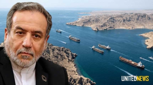 Foto: Abbas Araghchi, Iraans minister van Buitenlandse Zaken, met op de achtergrond de Straat van Hormuz.