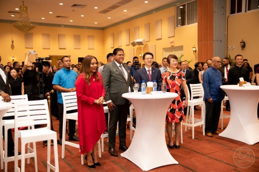 Tijdens deze receptie waren diverse notabelen aanwezig. Er is geproost op succes voor de nieuwe ambassadeur en op een goede relatie tussen Suriname en de Volksrepubliek China.