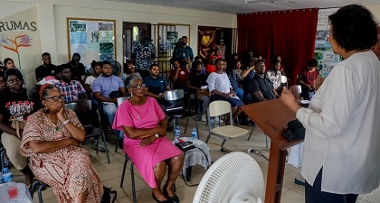 President Jennifer Simons heeft haar steun uitgesproken voor het pilotproject “Van Droom naar Doel” van Stichting RUMAS. Tijdens een teach-in gisteren, sprak het staatshoofd de eerste groep deelnemers toe en moedigde hen aan om de opgedane kennis en vaardigheden te gebruiken om zelfstandig te worden. In totaal hebben 23 jongeren gehoor gegeven aan dit project en de teach-in bijgewoond in de zaal van de stichting te Boerbuiten.