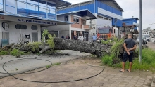 BOOM DWARS OVER KEIZERSTRAAT 08 mei 2022 - 07:05Vanmorgen viel een mahonieboom aan de Keizerstraat nabij de kruising van de Frederik Derbystraat, om en kwam dwars over de weg te liggen. Het verkeer ondervond hierdoor grote hinder.