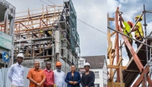 RENOVATIE MONUMENTAAL GEBOUW JUSTITIE EN POLITIE BEREIKT “HOOGSTE PUNT” 06 mrt 2022 - 12:43Met een kleine ceremonie hebben de grote renovatiewerkzaamheden hedenochtend aan de Mirandastraat 10, het oud KKF/Vreemdelingendienst gebouw, haar “hoogste punt” bereikt.