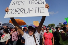 Commissie zal Anti-Corruptiewet evalueren 03 mei 2024 - 04:05President Chan Santokhi (m) krijgt een update over de uitvoering van de Anti-Corruptiewet. President Chan Santokhi heeft dinsdag een update ontvangen over de uitvoer