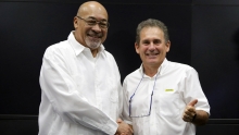 Rusland: Coronie met 2.500 kiezers belangrijk voor NPS 28 apr 2024 - 06:03NPS-partijleider Gregory Rusland feliciteert afdelingsvoorzitter Coronie, Harold Bendt. Het nieuwe bestuur is zaterdag geïnstalleerd. De Nationale Partij Suriname