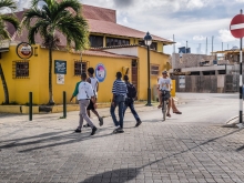 Makamba’s’ op de fiets door het centrum van Kralendijk. Beeld Martijn Steiner Lovisa / de Beeldunie
