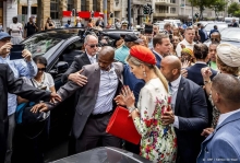 Koningspaar na slavernijmuseum door woedende menigte naar auto 20 okt 2023 - 13:23KAAPSTAD (ANP) - Koning Willem-Alexander en koningin Máxima moesten vrijdag door een woedende menigte van demonstranten naar hun auto na een bezoek aan museum Slave Lodge in Kaapstad.