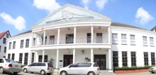 STAATSRAAD ADVISEERT TEGEN STAATSBESLUIT GRONDCONVERSIE 08 okt 2023 - 10:19Foto: Het gebouw van de Staatsraad op het fort Zeelandia Complex, Vz Staatsraad, president Santokhi, Ondervoorzitter Urmila Ramlagansing (VHP) en raadslid Maaltie Sardjoe (VHP).