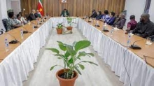 IMF-delegatie brengt bezoek aan VP Brunswijk 11 aug 2023 - 13:36Vice-President (VP) Ronnie Brunswijk heeft op zijn kabinet een evaluatiebespreking gevoerd met een team van het Internationaal Monetaire Fonds (IMF).