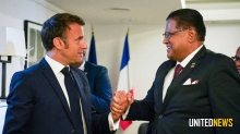 MACRON GEVRAAGD SAMEN TE WERKEN, WAARONDER BRUG OVER DE MAROWIJNERIVIER 24 jul 2023 - 06:58Foto: President Santokhi in gesprek met Franse president Emmanuel Macron