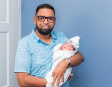Guyanese president Ali weer vader geworden 19 jun 2023 - 07:13De Guyanese president Irfaan Ali met zijn Vaderdag cadeau, Ilan Ali