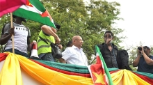Pakittow roept op tot grote protestactie: laten we deze regering massaal naar huis sturen 06 feb 2023 - 20:45Pakittow op het Onafhankelijkheidsplein: “Un no man nanga Desi Bouterse”. Foto: Suriname Herald