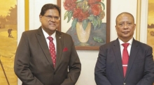 Brunswijk: “Met Andre Misiekaba is Abop compleet” 21 sep 2022 - 23:31Wnd. president Ronnie Brunswijk en oud-NDP-minister Andre Misiekaba te Goede Verwachting (beeld: Kab. VP)