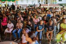 President viert kinderdag met jong Suriname op paleis 06 dec 2025 - 15:30Jong Suriname, met name kinderen uit verschillende tehuizen en buurten, hebben een onvergetelijke kinderdag gehad. President Jennifer Simons heeft op vrijdag 5 december als gastvrouw op het presidentieel paleis de jongeren een hartverwarmende dag bezorgd. Hierbij zijn haar gasten uit acht kindertehuizen en diverse ressorten in de bloemetjes gezet. Het voornaamste doel was om de kinderen plezier t