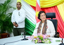 President over relatie Nederland: Gelijkwaardig en psychologisch zelfstandig 04 dec 2025 - 00:28President Jennifer Simons tijdens een persconferentie op het districtscommissariaat in Commewijne.