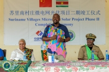 Energiezekerheid voor Sarakreek; 492 huishoudens krijgen 1×24 uur stroom 21 nov 2025 - 21:15“Energy for all, we leave no one behind! Het doel van het energiebeleid is om alle Surinamers vóór 2030, waar dan ook, van continue stroom te voorzien.” Dit zei minister David Abiamofo van Natuurlijke Hulpbronnen (NH) op donderdag 20 november bij de ingebruikname van de hybride Zonne-Energie Centrale ten behoeve van de dorpen Baku, Petijan en Lebidoti in het Sarakreek-gebied.Met het officie
