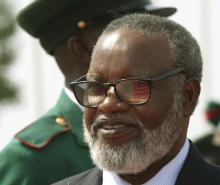 Sam Nujoma (95), de grondlegger van Namibië, overleden 09 feb 2025 - 18:49De Namibische president Sam Nujoma arriveert op het vliegveld in Abuja, Nigeria, 29 januari 2005. (Filefoto: Reuters) Sam Nujoma, de activist en guerrillaleider die