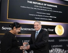 VES: Bureau Staatsschuld verdient een compliment 10 feb 2025 - 04:00Malty Dwarkasing, administrateur-generaal van het Bureau voor de Staatsschuld, neemt de award in ontvangst. De Vereniging van Economisten in Suriname (VES) erkent d