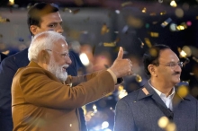 Na 27 jaar wint partij van Modi in New Delhi 09 feb 2025 - 02:33De Indiase premier Narendra Modi maakt een gebaar op het hoofdkwartier van de Bharatiya Janata Party (BJP) terwijl de BJP haar overwinning viert bij de verkiezingen voor de deelstaatsassemblee van Delhi, in New Delhi, India. (Foto: Reuters)