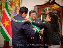Premier Mia Mottley van Barbados onderscheiden in Suriname 17 jan 2025 - 04:30President Chandrikapersad Santokhi van Suriname heeft premier Mia Mottley van Barbados op donderdag 16 januari gedecoree