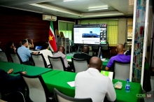 NIEUW DIGITAAL PLATFORM GETEST VOOR VERKIEZINGSPROCES 03 jan 2025 - 13:48Foto: Delano Landvreugd (minister van Biza), Maurits Hassankhan (onderminister van Biza), Mohamad Eskak (directeur van B