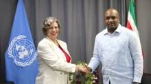 President Santokhi bespreekt versterking economische samenwerking met Suriname-Guyana Chamber of Commerce 20 nov 2024 - 21:18Bij aankomst in Guyana heeft president Chandrikapersad Santokhi, samen met zijn delegatie direct een ontmoeting gehad m