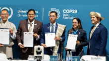 SURINAME LANCEERT TIJDENS COP29 G-ZERO ALLIANTIE VOOR KLIMAATNEUTRALE TOEKOMST 14 nov 2024 - 13:26Foto: President Santokhi bij de lancering van de G-Zero Alliantie, samen met premier Tshering Tobgay van Bhutan en verte