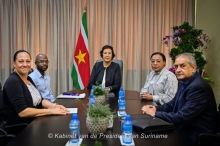 Minister Misiekaba informeert president Simons over acute zaken 25 jul 2025 - 18:50Minister André Misiekaba van Volksgezondheid, Welzijn en Arbeid heeft enkele belangrijke onderwerpen met president Jennifer Geerlings-Simons besproken. Dit gebeurde tijdens een overlegmoment op donderdag 24 juli op het Kabinet van de President. Bij de ontmoeting zijn onder andere de aanpak van urgente zaken en de beleidsvisie van het ministerie aan de orde gekomen. Aanwezig waren ook onderminist