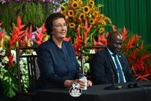 President Simons: Opdrachten worden alleen door mij gegeven en getekend 17 jul 2025 - 00:05President Jenny Simons spreekt de nieuwe ministers en de genodigden toe.