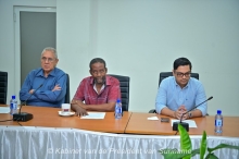 Brunswijk wil aanpak situatie gevangenis Santo Boma 29 okt 2024 - 04:00Waarnemend president Ronnie Brunswijk bezoekt de gedetineerden Stephanus Dendoe, Ernst Gefferie (midden) en Benny Brondenstein (zittend). Zij zijn in de ziekenboeg van Santo Boma. (Foto's: Directoraat Volkscommunicatie)