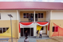 Campus Para biedt kinderen binnenland onderwijskansen 24 mei 2025 - 14:20Na de opening van de schoolcampus Moengo Tapu op donderdag 22 mei, is een dag later in een feestelijke sfeer ook de schoolcampus Para officieel in gebruik genomen. President Chandrikapersad Santokhi heeft samen met minister Henry Ori van Onderwijs, Wetenschap en Cultuur het plakkaat en naambord onthuld. President Santokhi sprak van moed en durf die nodig waren om dit door de Islamic Development B