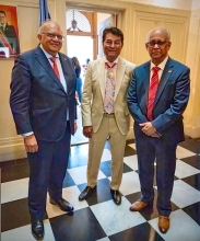 Meet and greet businessmeeting met president Santokhi in Queens 24 sep 2024 - 00:18De Honorair Consul van Suriname in New York, Anand Jagessar, en Roshan Aliahmad zijn de initiatiefnemers geweest voor het organiseren van een ‘Meet and Greet’ bijeenkomst waarbij zakenlieden en ond