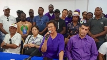 Simons: Wie begint uit te schelden heeft niets te bieden 25 mrt 2025 - 18:13De NDP delegatie onder leiding van voorzitter Jennifer Geerlings-Simons tijdens een persmoment na het indienen van de kandidatenlijst bij CHS. De NDP wil niet deelnemen aan verbaal polit