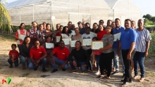 21 personen getraind in tuin- en landbouw 01 mrt 2025 - 02:52De cursisten met hun certificaten. Zij zijn getraind door het ministerie van AWJ in tuin- en landbouw. Er is invulling gegeven aan de vraag. (Foto: AWJ) 21 personen,