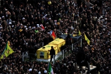 Tienduizenden rouwen om vermoorde Hezbollah-leider, Nasrallah 23 feb 2025 - 19:27Een voertuig vervoert de kisten van de voormalige Hezbollah-leiders Hassan Nasrallah en Hashem Safieddine, die vorig jaar werden gedood bij Israëlische luchtaanvallen, tijdens een openbare begrafenisceremonie in het Camille Chamoun Sports City Stadium, aan de rand van Beiroet