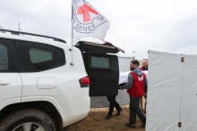 Hamas draagt lichamen over van jongste gijzelaars 20 feb 2025 - 14:49Leden van het Rode Kruis verplaatsen een doodskist tijdens de overdracht door Hamas van de overleden gevangenen Oded Lifschitz, Shiri Bibas en haar twee kinderen Kfir en Ariel Bibas, in Khan Younis, in de zuidelijke Gazastrook. (Foto: Reuters)