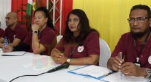 Nog uitdagingen voor partijen na registratie bij CHS 20 feb 2025 - 06:57Het Centraal Hoofdstembureau op de eerste dag van de registratie van politieke partijen. Tweede van rechts voorzitter Lilawati Punwasi-Raghoebier. De registratie wordt gehouden tot en met 24 februari 15.00 uur. (Foto: Ranu Abhelakh)