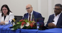 IMF aan Suriname: nu op dieet en hou discipline aan 17 feb 2025 - 22:57Andre Roncaglia, IMF Executive Director voor Suriname aan het woord. Hij wordt geflankeerd door Anastacia (Anna) Guscina delegatieleider en minister Stanley Raghoebarsing. (Foto: Ranu Abhelakh)