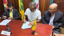 DNL en KTPI gaan samen de verkiezingen in 14 feb 2025 - 10:51Dharm Mungra, voorzitter van de Democratische Nationale Liga (DNL), en Sutrisno Mitro (KTPI) tekenen de samenwerkingsovereenkomst. De Democratische Nationale Liga