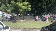 Padieboeren niet akkoord met SRD 2.000 vergoeding per ha 01 aug 2024 - 05:00Padieboeren in de nacht op het Brassaplein bij het districtscommissariaat in Nieuw Nickerie. Zij bivakkeren daar sinds dinsdag. Rechts in blauw, een van de woordvoerders, Sandjai Sahadew.