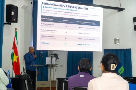 Daarnaast presenteerde consultant Rajendredath Narain de voorlopige resultaten van de evaluatie van het GEF-portfolio in Suriname. Uit deze analyse blijkt dat in de afgelopen drie decennia ongeveer zestig GEF-projecten in het land zijn uitgevoerd, variërend van kleinschalige initiatieven tot grotere projecten met substantiële investeringen. De evaluatie richt zich onder meer op de relevantie, efficiëntie, impact en duurzaamheid van deze projecten, zodat belangrijke lessen kunnen worden meegenomen in toekomstige programmering.
