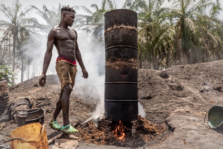 oliepalm worden binnen een dag na de oogst gestoomd en uitgeperst. Beeld Sven Torfinn