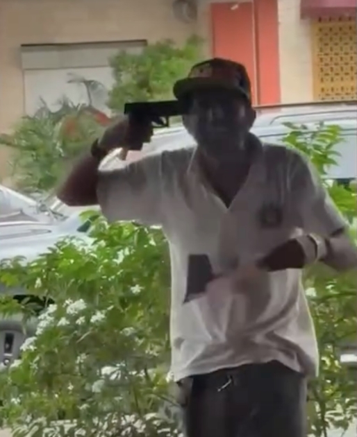 Beelden van het incident laten zien dat de man het wapen tegen zijn hoofd hield. Dat zorgde voor extra paniek op de locatie.