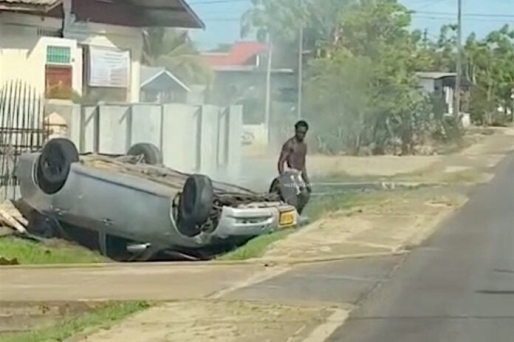 Een automobilist is donderdag in een goot aan de Welgedacht A-weg in Suriname terechtgekomen, nadat hij de controle over het stuur heeft verloren. Het geval werd gefilmd door een medeweggebruiker (onder).