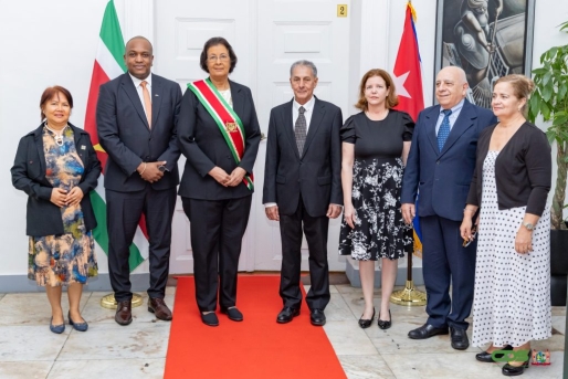 Zes residerende en niet-residerende ambassadeurs hebben hun geloofsbrieven aan president Jennifer Simons aangeboden. Dit gebeurde op 12 maart 2026 op het Presidentieel Paleis, waar het staatshoofd afzonderlijk in gesprek ging met de gezanten uit Cuba, Georgië, Israël, Ghana, Bulgarije en Griekenland. De ontmoetingen stonden in het teken van het versterken van de diplomatieke banden en het verdiepen van de samenwerking tussen Suriname en de genoemde landen.